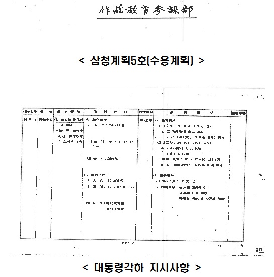 ‘삼청교육(참고1)’·‘삼청교육(참고2)’은 작전교육참모부에서 생산한 삼청계획 5호(수용계획), 대통령각하 지시사항 등이 포함된 문서로 교육생의 훈련 연장, 특수교도소 설립 검토 등의 내용이 담겨 있다.