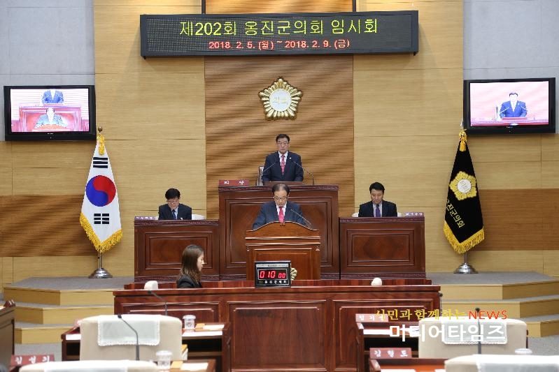 [미디어타임즈=문상수 기자] 인천광역시 옹진군의회(의장 백동현)는 2018년도 2월 5일부터 2월 9일까지 5일간의 일정으로 제202회 임시회를 개회했다.이번 임시회에서는 2018년도 주요사업 추진계획보고 청취 및 옹진군수로부터 제출된, 「옹진군 농업대학 설치 및 운영 조례일부개정조례안」,「옹진군 공립어린이집 관리운영에 관한 민간위탁 동의안」등 7개의 안건을 심의 할 예정이다.세부일정으로는 2월 5일 본회의 개회를 시작으로 7일까지 2018년도 주요사업 추진계획보고를 청취하고, 8일 조례심사 특별위원회(위원장 신영희)를 구성하여 부의된 안건을 심의하고, 9일 본회에 상정하여 의결 후 폐회한다.이번 임시회에서는 2018년 주요사업추진계획 보고를 청취하여 신속집행 추진 실적을 확인할 예정이다.백동현 의장은 "새해 첫 의정활동의 시작인만큼 새로운 각오와 그동안 경험을 바탕으로 군민의 입장에서 미흡한 점이 없는지 꼼꼼히 살펴보고 7대의회의 초심으로 돌아와 발전적인 대안을 제시해 달라"고 당부했다.