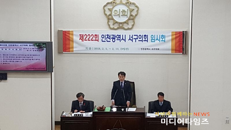 [미디어타임즈=문상수 기자] 인천광역시 서구의회(의장 심우창)가 제222회 임시회를 2월 5일부터 2월 13일까지 총 9일간의 일정으로 개회하였다. 먼저 2월 5일 제1차 본회의에서는 이용창 의원의 대표발의로 전체 의원이 경인고속도로 일반도로화 사업 국비지원 촉구 결의안을 발의하였다. 이용창 의원은 “정부는 경인고속도로 일반도로화에 따른 교통혼잡을 해소하고 사업이 성공적으로 수행될 수 있도록 일반도로화 구간에 대한 대도시권 교통혼잡도로 지정을 검토하고 관련 예산을 적극 지원하며, 사업추진에 따른 주민불편해소 및 교통대책을 즉각 마련하도록 요구한다.”라고 밝혔다.또한, 김용인 의원은 자유발언에서 “취약계층들이 한파 등의 환경변화에 어려움은 없는지 먼저 둘러보고 살펴보는 ‘찾아가는 복지’, ‘발로 뛰는 복지’, ‘촘촘한 그물망 복지’가 실천이 되어야 하며 동 행정복지센터가 최일선 기관으로서 맞춤형 복지가 정착될 수 있도록 노력해야 하고 주민들이 진정 원하는 복지서비스를 창출하여야 한다.”고 밝혔다.이어 천성주 의원의 자유발언에서는 “화력발전․원자력발전에 부과되는 지역자원시설세의 기존 시․군만 배분(지역자원시설세의 65%)된 것이 자치구까지 확대 배분되고 세율이 조정되면 서구는 수도권 매립지와 화력발전소, SK인천석유화학이 소재하고 있어 많은 세수확보가 가능하며 이 재원으로 발전소 주변지역의 환경오염, 경제적 피해, 주민건강 위협 등 각종 불이익을 감수하고 있는 해당 지역 주민들의 환경개선과 안전관리 등에 더 많이 쓰여 지게 될 것이다.”라고 밝혔다.또한, 2월 6일부터 2월 12일까지는 2018년도 주요업무보고와 조례안 심사를 한 후 2월 13일 제2차 본회의를 마지막으로 일정을 마무리 한다. 제2차 본회의에서는 조례안 심의 및 기타 안건을 처리할 예정이다.이번 임시회 일정과 관련하여 서구의회 심우창 의장은, “우리 의원들 모두 금년에도 집행부의 각종 사업에 대하여 적극적으로 지원하고 협력하여 의정활동에 더욱 충실할 것이며, 임시회를 통해 2018년도 주요사업계획 심의 시 주민복지 향상을 위해 충분히 검토하여 업무보고에 철저를 기해 달라”고 밝혔다.