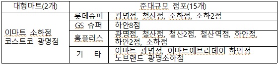 이에 2월 의무휴업일인 둘째 일요일을 설날로 변경 요청한 점포에 대하여 변경시행을 승인하여, GS슈퍼 광명점을 제외한 대형마트 2개소와 준대규모 점포 15개소에 대하여 설날 당일에 휴업을 실시한다.