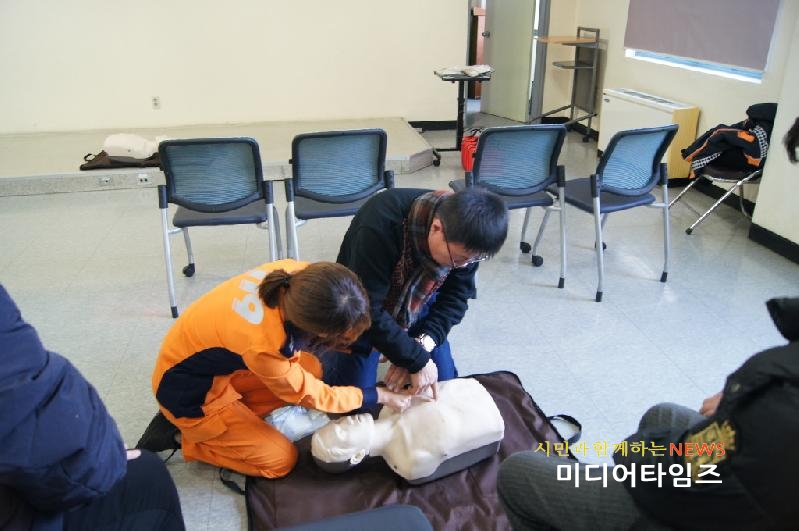 | 서구보건소와 협업을 통한 심폐소생술 교육 사진. <ⓒ미디어타임즈> |