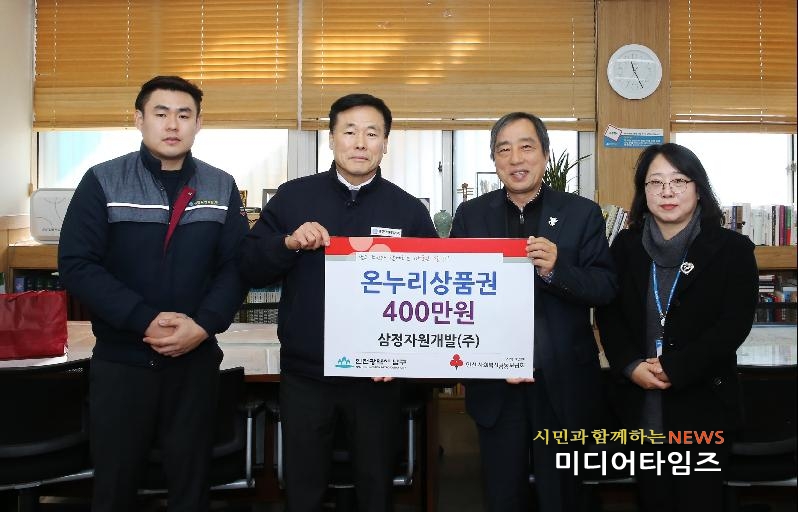 [미디어타임즈=문상수 기자] 설 명절을 맞아 어려운 이웃을 돕기 위한 온정의 손길이 줄을 잇고 있다.삼정자원개발(주)는 6일 400만원 상당의 온누리상품권을 인천 남구에 기탁했다.전달된 상품권은 인천사회복지공동모금회를 통해 지역 내 저소득 세대에 전달될 예정이다.문왕식 삼정자원개발(주) 전무는 “설 명절을 맞아 전통시장 활성화에도 기여하고 이웃들에게도 지역사회의 관심어린 애정을 전달하기 위해 온누리상품권을 기탁하게 됐다”며 “상품권을 전달받은 이웃들이 기쁘고 행복한 명절을 보냈으면 좋겠다”고 말했다.박우섭 남구청장은 “지난 추석에도 사랑의 쌀을 후원해 주셔서 주민들이 따뜻한 명절을 보낼 수 있었다”며 “이번 명절에도 주민들을 위해 나눔의 가치를 실천해 주셔서 감사드린다”고 말했다.또 같은 날 관교·문학동 새마을금고는 사랑의 좀도리 운동을 통해 모은 사랑의 쌀 40포(1포 20kg)를 관교동 주민센터에 기탁했다.김의석 관교·문학동 새마을금고 지점장은 “어려운 이웃들이 따뜻한 설을 보내길 바라는 마음에서 쌀을 기탁하게 됐다”며 “앞으로도 포근한 지역사회 분위기를 조성하는데 앞장서겠다”고 말했다.이에 앞서 학익1동 행정복지센터는 5일 지역사회보장협의체 봉사자들과 함께 사례관리서비스연계대상자의 주거환경 개선활동을 전개했다.이날 봉사활동은 질병으로 인해 부부가 모두 근로능력을 상실한 가정에 희망을 주기 위해 실시됐다.10여명의 참여자들은 집안을 청소하고 방역작업 등을 실시, 가정 내 위생 상태를 개선하는 한편 정리정돈을 도왔다.한편 학익1동 지역사회보장협의체는 평소에도 독거노인 위문방문 및 위기가정세대를 지원하는 등 지역 사회를 위한 활동을 전개하고 있다.
