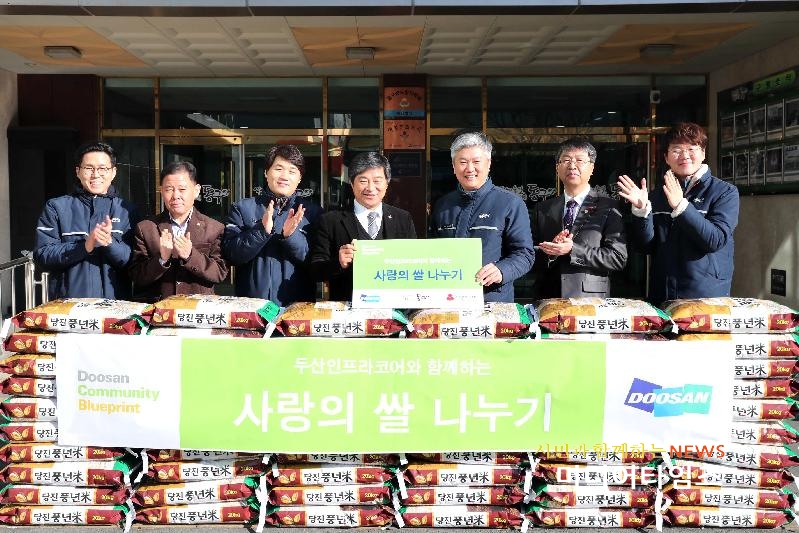 | 두산인프라코어 설맞이 쌀 전달식 사진. <ⓒ미디어타임즈> |