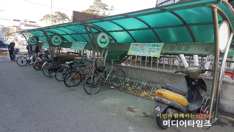 | 송림오거리 자전거보관대 사진. <ⓒ미디어타임즈> |