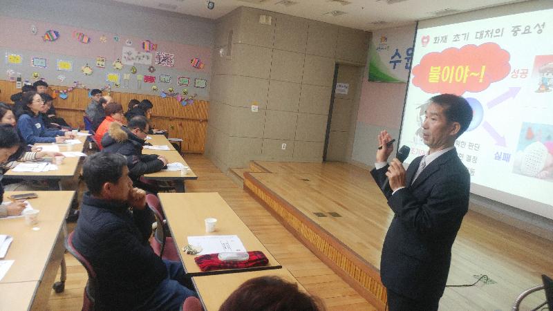 수원소방서 관계자가 강사로 나서 안전점검 요령, 소화기 사용법, 화재 시 대피요령 등을 설명했다.