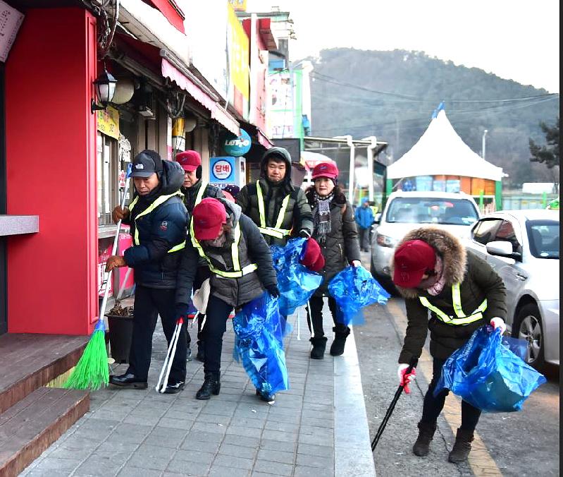 이날 거리청소는 올 겨울 들어 가장 추운 영하 14도 한파의 날씨에도 불구하고 환경미화원, 주민자치위원회, 통장, 지역사회보장협의체 등 반월동 유관단체를 비롯한 시민 20여명이 함께했다.