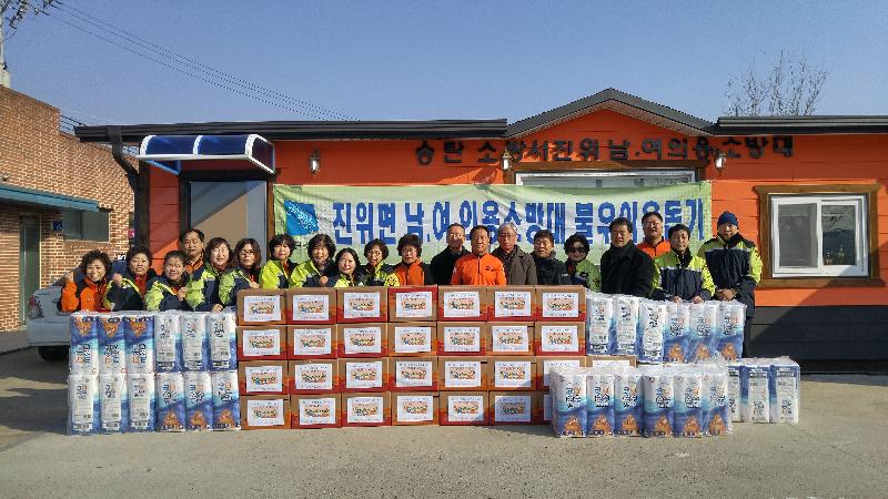 [미디어타임즈= 이옥수 기자] 평택시 진위면 남‧녀 의용소방대는(남대장 권문식, 여대장 전우숙)는 8일 설 명절을 맞이하여 면내 어려운 이웃 34가구에 생필품 나눔 행사를 가졌다.