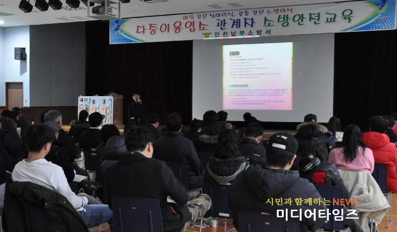 [미디어타임즈=문상수 기자] 인천남부소방서(서장 류환형) 다중이용업소 관계자들을 대상으로 다중이용업소와 관련된 법령에 따라 소방안전교육을 실시했다. 다중이용업을 새로이 하려는 영업주 및 영업에 종사하고자 하는 종업원을 대상으로 하는 신규교육 신청자와 다중이용업소의 안전관리에 관한 특별법 위반자를 대상으로 하는 수시교육 신청자를 대상으로 실시된 이번 소방안전교육은 ▲화재안전과 관련된 법령 및 제도 ▲소방시설 및 방화시설의 유지관리 및 사용방법 ▲영업장 내 화재가 발생한 경우 초기대응 및 대피요령 ▲소화기, 소화전, 심폐소생술 방법 등을 주요 교육내용으로 실시됐다.