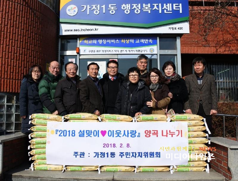 | 가정1동 주민자치위원회, 설맞이 이웃사랑 양곡 나눔 사진. <ⓒ미디어타임즈> |