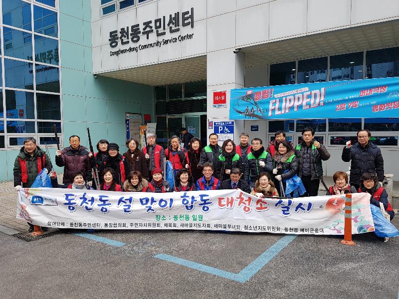 [미디어타임즈= 이옥수 기자] 용인시 수지구 동천동은 9일 관내 주요도로변에서 통장협의회 등 민간단체 7곳 회원과 주민센터 직원 등 70여명이 설맞이 대청소를 실시했다고 밝혔다.
