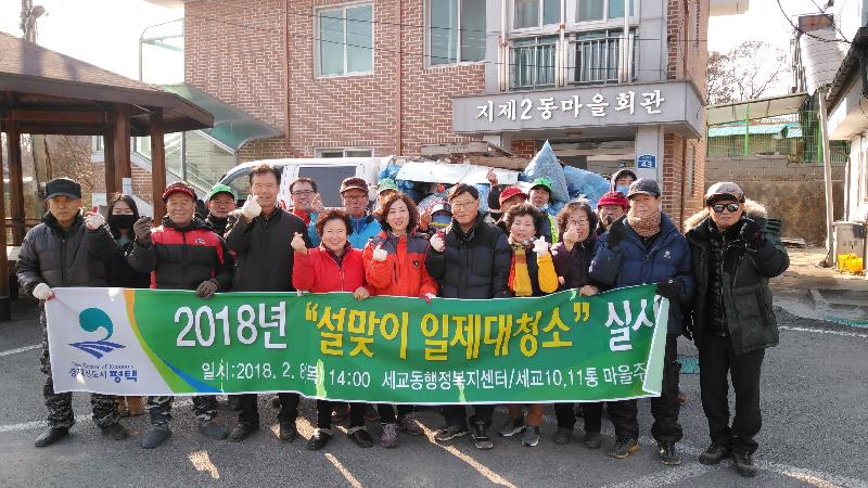 이로 인해 세교11통 마을 주민들은 민족 대명절인 설을 맞이하여 고향을 찾는 귀성객들에게 깨끗한 고향의 이미지를 심어주고 청결한 마을환경 유지를 위해 자발적으로 일제대청소에 참여했다.