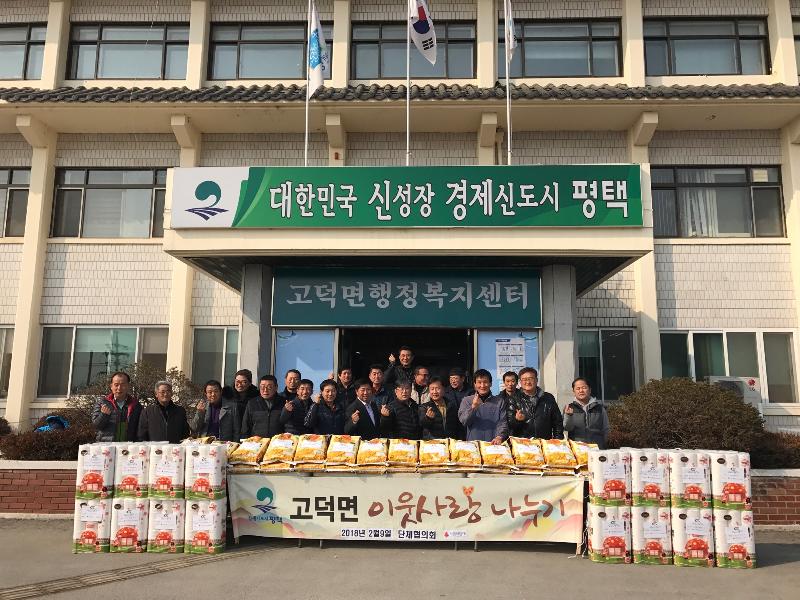 이번 이웃사랑 나누기를 추진한 고덕면 단체협의회 관계자는 “이웃돕기를 통해 어려운 이웃의 삶에 희망과 용기를 주고 새로운 삶의 의지를 키워나갈 수 있도록 도움이 되었으면 한다 ’고 했다.