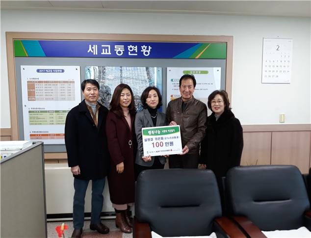 [미디어타임즈= 이옥수 기자] 세교동 주민자치위원회(회장 유해달)에서 지난 해 추석에 이어, 2018년 “설”명절을 맞이하여 세교동 관할 어려운 이웃들을 위해 9일 온누리상품권 100만원을 기탁하여 화제다.