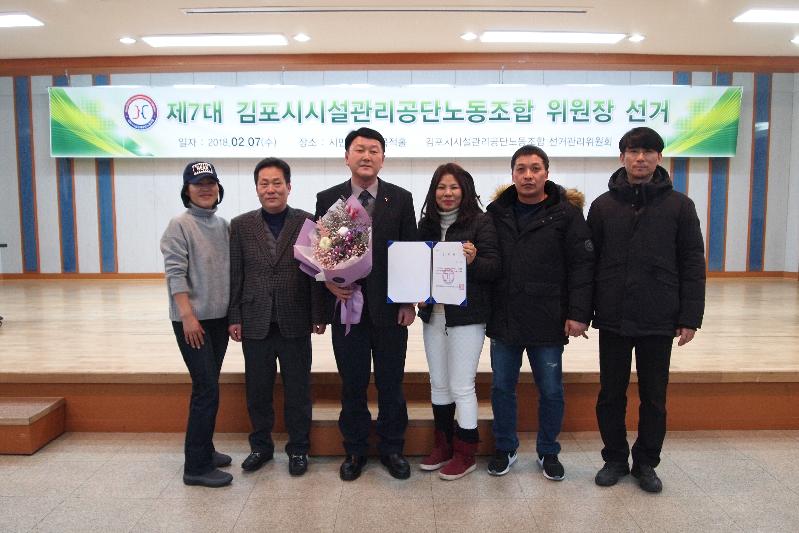 [미디어타임즈= 이옥수 기자] □ 지난 7일 김포시민회관 3층 다목적홀에서는 김포시시설관리공단노동조합 제7대 위원장 선출 투표가 실시되었다. 금번 노조위원장 선거에는 현 이덕재 위원장이 단독 입후보해 찬반투표로 실시되었으며 전체조합원의 높은 관심속에 76%이상이 투표에 참여하여 찬성 90.3%로 당선되었다.