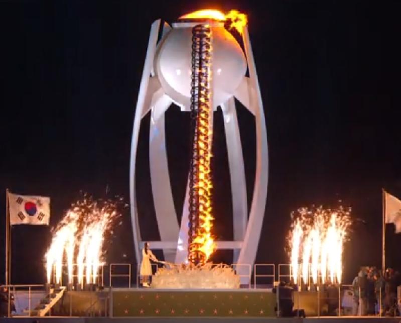 | 지난 9일 열린 2018 평창동계올림픽 개막식에서 성화봉송의 마지막 주자 전 피겨선수 김연아가 성화 점화대에 "평창의 불꽃"을 밝혔다. <사진=KBS1 캡쳐> |
