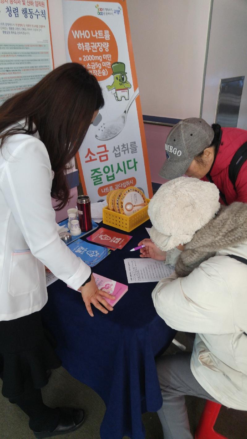 ‘싱겁게 먹기’ 캠페인은 고염식 자가진단 및 적정 농도의 콩나물국 시음으로 짠맛 강도 및 선호도를 점검하는 방식으로 이뤄진다. 이를 통해 평소 내가 얼마나 짜게 먹고 있는지 알 수 있으며 그 결과에 따라 1:1 영양상담도 진행한다.