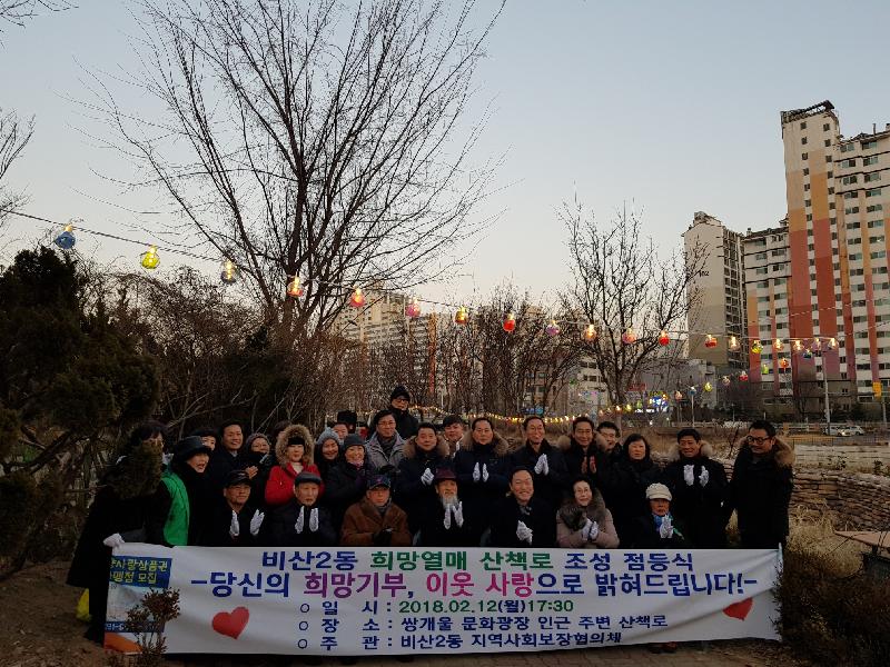 [미디어타임즈= 신훈종 기자] 안양시 비산2동 지역사회보장협의체(위원장 한영규)는 지난 12일 저녁 쌍개울 문화 광장 인근 주변 산책로에서 300여명 주민들의 희망을 밝히는‘희망열매 점등식’을 가졌다.