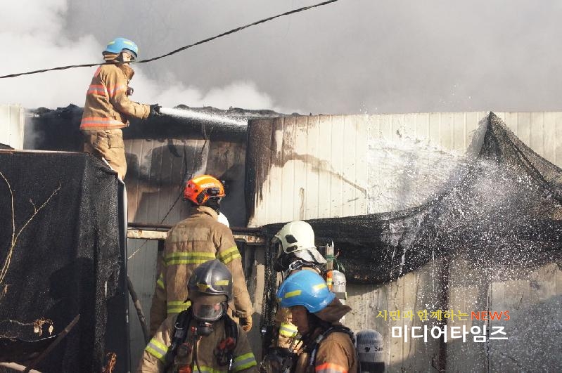 | 백석동 주거용 비닐하우스 화재 신속진압 사진. <ⓒ미디어타임즈> |