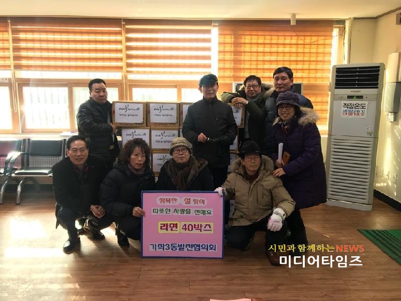 | 가좌3동발전협의회 설 맞이 이웃돕기 라면 전달 사진. <ⓒ미디어타임즈> |