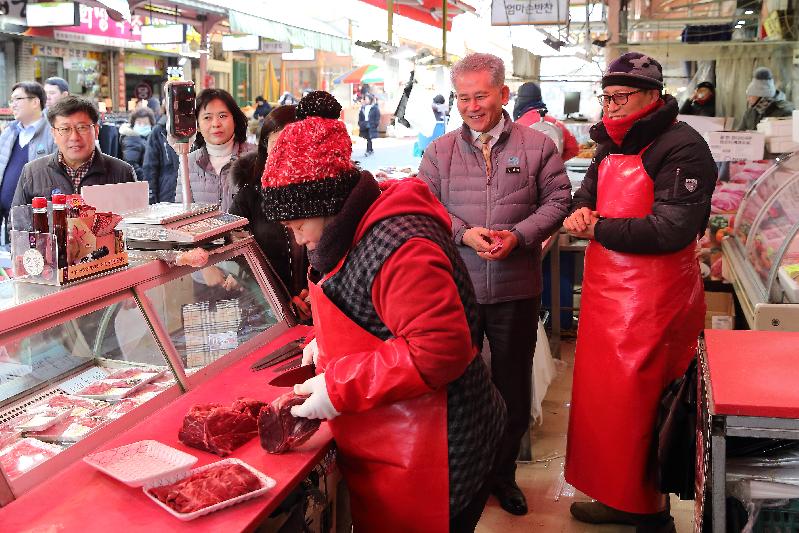 장 구청장은 유통환경의 변화와 연이은 한파로 인해 생업에 어려움을 겪고 있는 상인들을 격려하고, 온누리 상품권으로 과일, 육류 등 다양한 물품을 구입하는 한편, 시장곳곳을 방문하며 애로사항을 청취하며 시장의 생생한 목소리 들었다. 또, 구입한 설 성수용품은 사회복지시설 및 아동복지시설에 전달했다.