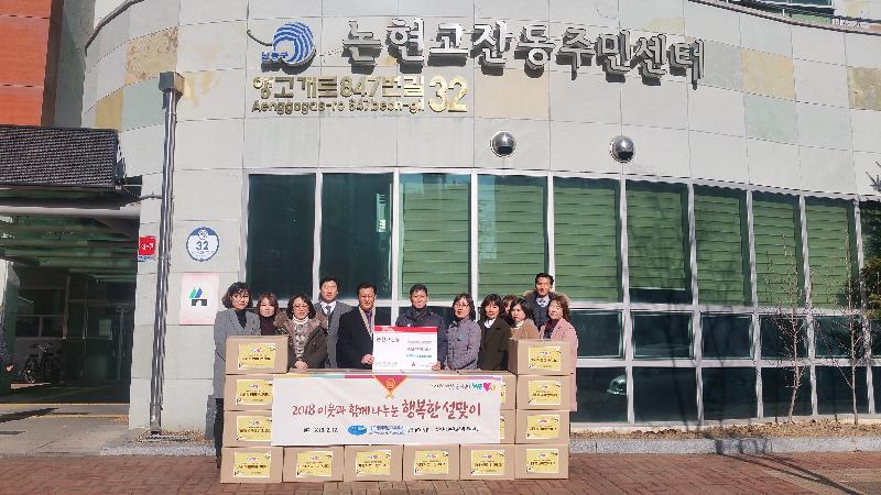 장석현 구청장은 “설을 맞아 우리 주변의 어려운 이웃에 따뜻한 정을 나누고 살펴주시는 여러 후원자분들께 감사드린다”며 “앞으로도 나눔문화 확산과 더불어 살기 좋은 남동구를 위해 노력하겠다”고 말했다.
