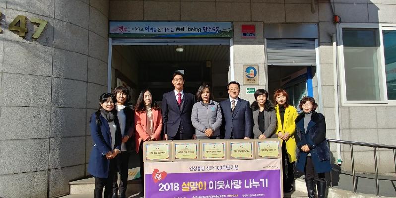 [미디어타임즈= 김광한 기자] 만수6동에 소재한 ‘하나님의 교회’가 지난 12일, 설 명절을 맞아 이웃돕기 후원 물품으로 생필품 꾸러미 20개를 만수6동(동장 안연숙)에 기탁했다.