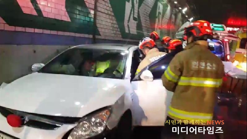 | 청라국제지하차도 단독 교통사고 신속한 구조 사진.<ⓒ미디어타임즈> |