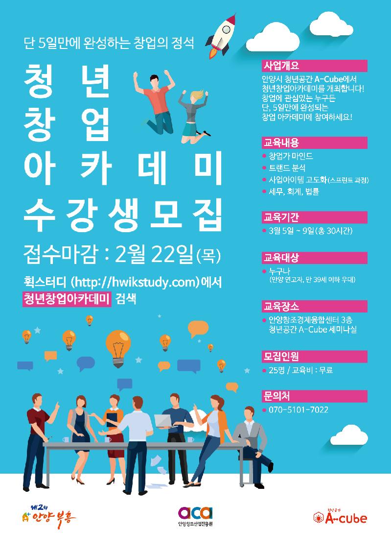 오는 3월 5일부터 9일까지 청년공간 에이큐브에서 제1차 청년창업 아카데미 개최