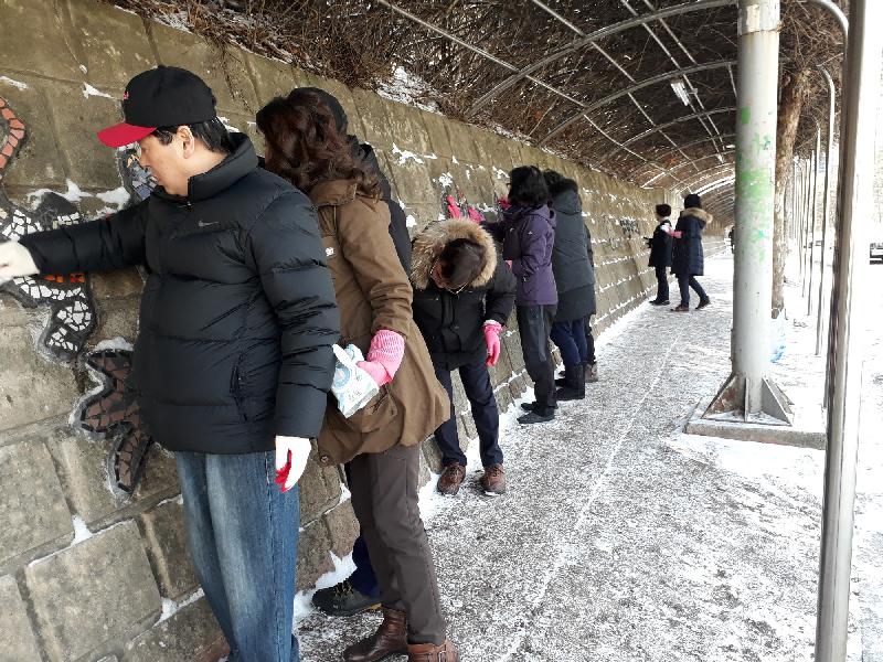 이날 정화활동은 성포동주민자치위원 등 15명이 참여한 가운데 성포동 행정복지센터 옆을 따라 경일초등학교 앞까지 조성된 개나리터널 전래동화길 벽화 주변을 중심으로 쓰레기를 수거하고 벽화를 정비했다.