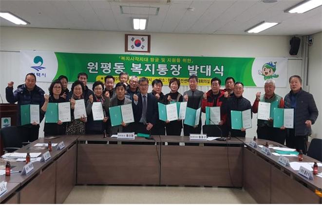 [미디어타임즈= 이옥수 기자] 평택시 원평동(동장 황선형)은 14일 원평동 주민센터 회의실에서 ‘복지사각지대 발굴 및 지원을 위한 복지통장 발대식’을 가졌다.