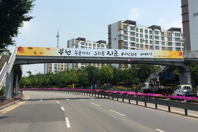| 육교에 게시된 ‘시가 활짝’ 수상작(여월육교)사진. |