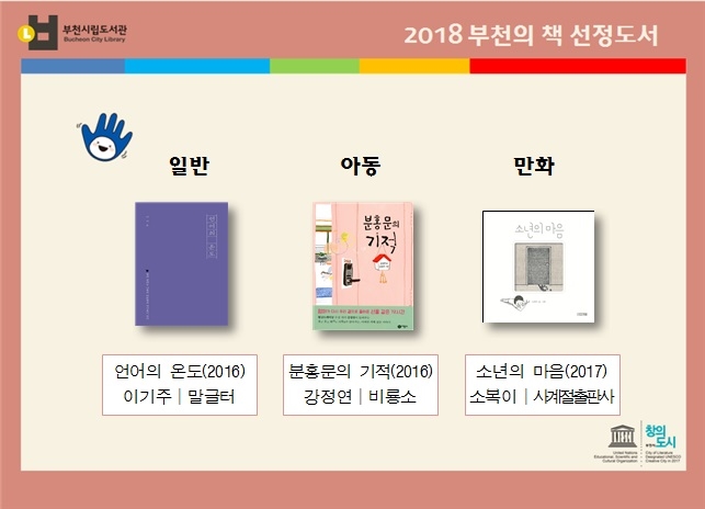 시는 ‘2018 부천의 책’을 시립도서관, 작은도서관, 학교 등에 비치해 누구나 읽어볼 수 있도록 할 계획이다.