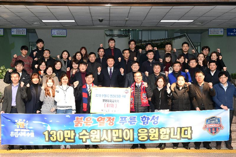 [미디어타임즈= 김광한 기자] 수원시 문화체육교육국 공무원들이 수원FC의 2018년 연간회원권을 단체로 구매하며 ‘K리그 1’ 재승격을 노리고 있는 수원 FC에 힘을 실어줬다.