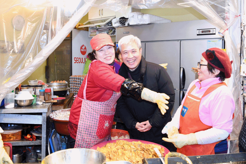 | 14일 과상욱 시장이 오색시장에서 장보기 행사를 하고 있다. |