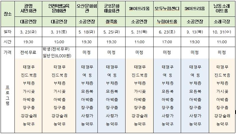 오는 3월23일(금)부터 10월31일까지 경기도 내 일부 지자체 및 인천시에서 공연