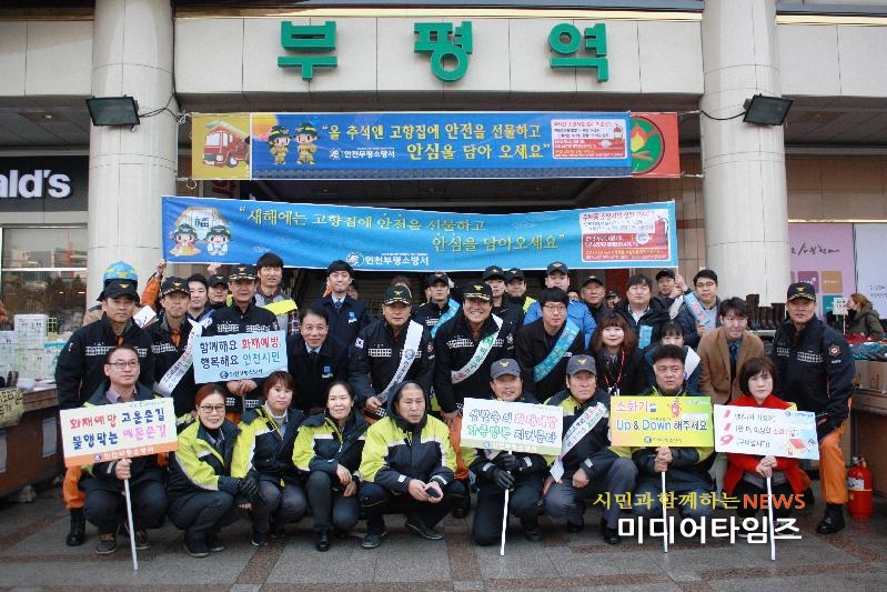 [미디어타임즈=문상수 기자] 인천부평소방서(서장 정병권)는 지난14일 다가오는 설 명절을 맞아 시민들이 고향집에 ‘안전을 선물하고, 안심을 담아 오자’는 슬로건으로 부평역 일대에서 고향집 주택용 소방시설 선물하기 홍보 캠페인을 펼쳤다.고향집 주택용 소방시설 선물하기 캠페인은 가정에서 화재 발생을 초기에 인지해 경보음을 듣고 대피할 수 있도록 돕는‘단독경보기감지기’와 초기에 화재를 진압 할 수 있는‘소화기’를 고향집에 선물하자는 운동이다. 이 날 캠페인은 소방, 도시철도, 의용소방대, 민자역사 관계자 등 60여명이 참여해 어깨띠와 피켓을 활용하여 가두 캠페인을 벌이면서 시민들과 시장 상인들에게 안내문 배부 등 자율적인 설치 독려와 화재예방 경각심을 일깨우기 위해 홍보에 나섰다. 주택용 소방시설 의무설치는 '화재예방 소방시설 설치·유지 및 안전관리에 관한 법률 제8조'에 따라 주택(단독주택, 다가구주택, 연립주택, 다세대주택)에 소화기와 단독경보형감지기 등 기초소방시설 설치를 의무화하고 있다. 소방서 관계자는 “이번 명절을 맞이해 시민들께서 고향에 가실 때 주택용 소방시설을 설치하여 화재로부터 안심을 담아오자는 취지로 홍보활동을 펼쳤다”며“고향집에 안전을 지킬 수 있는 주택용 소방시설 설치에 적극적인 동참을 바란다”고 말했다.