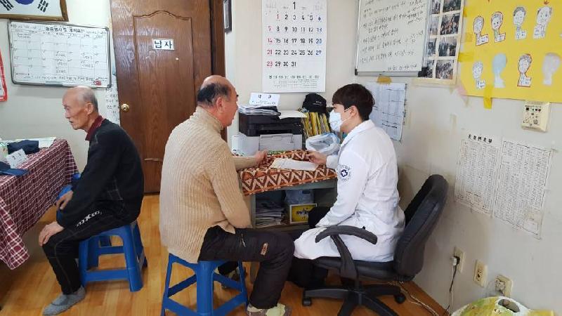 경로당 이용 어르신들을 대상으로 치과, 내과, 한방과 진료를 진행하며 고혈압, 당뇨, 빈혈, 고지혈증 등 만성질환 관리와 침 치료, 틀니관리, 스케일링 등 특화 진료를 통해 전반적인 건강관리 및 질환에 따른 약을 처방한다.