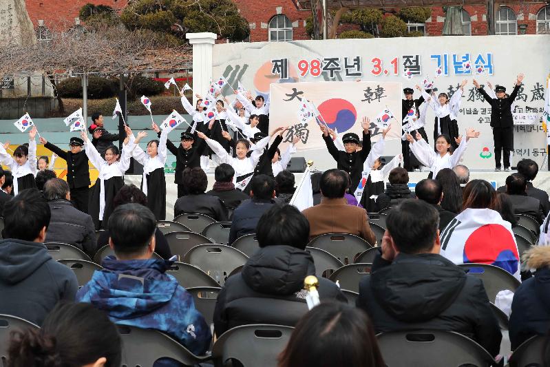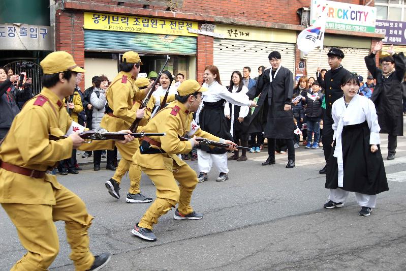[미디어타임즈=문상수 기자] 인천 창영초등학교에서 99년 전 3월 1일 태극기 물결과 함께 울려퍼졌던‘대한독립만세!’의 뜨거운 함성소리가 오는 3월 1일 후손들의 함성소리로 다시 한 번 가득 채워진다.인천 동구(구청장 이흥수)는 제99주년 3․1절을 맞아 인천 3․1 독립운동의 발상지인 창영초등학교에서 국권회복을 위한 애국선열들의 자주 독립 정신과 숭고한 희생정신을 기리고, 구민의 단결과 애국심을 고취시키기 위해 구민이 함께 참여하는 다양한 기념행사를 개최할 예정이다. 기념식은 창영초등학교에서 개최되며 독립선언서 낭독, 순국선열 및 호국영령에 대한 묵념, 기념사, 3·1절 노래 제창, 만세삼창 순서로 경건한 분위기 속에 진행된다. 이어 열리는 만세운동 재현 시가행진은 기념식 참여자 전원이 태극기를 흔들며 ‘대한독립 만세’를 외치며 창영초등학교를 출발해 배다리 삼거리를 거쳐 동인천역 북광장까지 약 1km를 행진하게 된다. 시가행사 중간에는 직원들이 직접 99년 전 3․1절 만세운동의 그날을 재연한다. 일제의 위협에도 굴하지 않고 행진을 이어나가는 선조들의 결연한 모습과 체포된 만세시위자에 대한 일제의 탄압에 저항을 표현하는 퍼포먼스를 펼친다.이후 동인천역 북광장에는 행진에 참여한 주민들을 위한 다양한 부대행사가 준비되어 있다. 청소년 댄스동아리의 플래시몹 댄스, 한국무용단 공연 및 대형 서예 글씨 퍼포먼스가 펼쳐질 예정이다.특히 태권도 시범단이 각시탈과 일본순사로 변장해 결투하는 장면의 연출은 보는 이들에게 민족적 우월감과 자존심을 고취시키는 볼거리를 제공할 것으로 기대된다. 한편 구 관계자는 “이번 행사는 3·1운동 당시 우리 민족이 보여준 역동성을 바탕으로 역사의식을 강화하고 순국선열의 정신을 다함께 기리는 뜻깊은 자리가 될 것”이라며 주민들의 많은 관심과 참여를 당부했다.