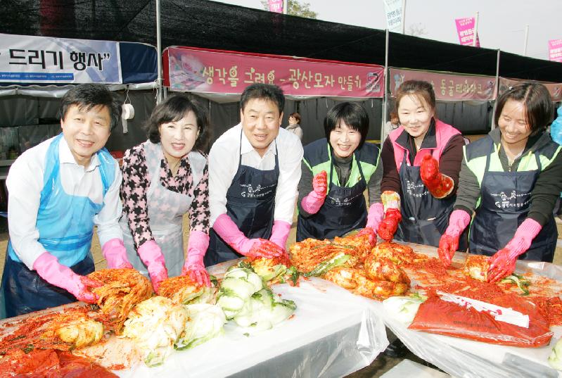 광명시의회(의장 나상성)가 6일 광명동굴에서 열린 행복 고추장, 김장김치 담가 드리기 행사에 참여해 구슬땀을 흘렸다.