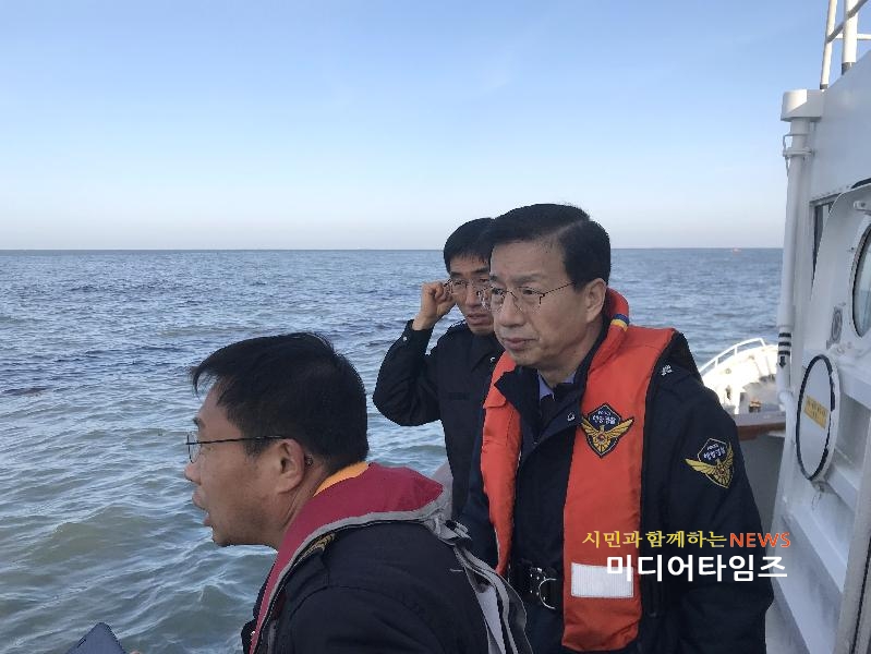 | 중부청장 태안 사고선박 해역에서 현장지휘 사진. <ⓒ미디어타임즈> |