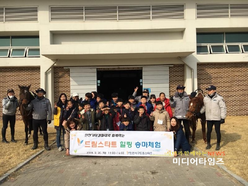 [미디어타임즈=문상수 기자] 인천시 서구 드림스타트는 지난 20일 드림스타트 초등학교 3학년 이상 아동 20명을 대상으로 “힐링 승마체험프로그램”을 운영했다. 이번 승마체험프로그램은 신체발달 부진 및 또래관계가 어려운 취약계층아동을 위해 마련됐으며, 공공복지 프로그램을 진행하고 있는 인천기마경찰대와 연계해 드림파크 승마장에서 진행됐다. 이날 행사는 말의 특성 이해를 위한 기본교육과 세마·마방 청소 등 말 관리 체험, 말 먹이주기, 승마체험으로 구성됐다. 이번 승마체험을 시작으로 인천기마경찰대는 또래아동 관계증진, 사회적응 능력 향상과 말과의 교감을 통한 정서 순화, 신체 건강증진 및 자신감 향상에 도움을 주기 위한 승마교실을 드림스타트 아동을 대상으로 연 20회 제공 할 계획이다.프로그램에 참여한 아동은 “말 타는 것과 말 먹이 주는 게 정말 재미있었고 다음에 또 참여하고 싶다며 좋은 추억이 됐다”고 소감을 말했다.서구 드림스타트 관계자는 “앞으로도 지역사회 자원을 연계한 다양한 프로그램을 통해서 아동들에게 건강하게 성장할 수 있는 기회를 제공토록 노력하겠다”고 전했다.