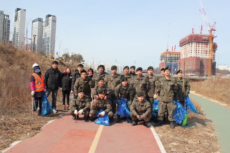 [미디어타임즈= 이옥수 기자] 고양시(시장 최성) 덕양구는 지난 21일 30사단 팬텀부대와 함께 창릉천 봄맞이 대청소에 힘을 모았다.지난 19일은 24절기 중 ‘우수’로 봄에 들어선다는 입춘과 동면하던 개구리가 놀라서 깬다는 경칩 사이에 있는 24절기 중 하나다. 이 같이 봄을 알리는 절기를 맞이해 30사단 팬텀부대에서 부대원들과 함께 뜻깊은 대민 봉사를 구에 제안했다. 구에서도 적극적인 행정지원을 약속함에 따라 이번 대청소 작전이 성사됐다.이에 군 병력 200여 명과 덕양구 공무원 20명이 함께 삼송동 테크노밸리 부근부터 북한산 입구까지 약 5Km에 걸쳐 쓰레기 약 1톤과 폐자전거 등 생활폐기물 약 3톤가량을 수거했다.구 관계자는 “이번 대청소를 계기로 덕양구와 30사단 팬텀부대에서는 향후 지속적인 협력 관계에서 상호 유기적인 소통체계를 갖추겠다”며 “앞으로도 주기적으로 창릉천 청소 작전을 수행할 수 있도록 노력할 것”이라고 밝혔다.