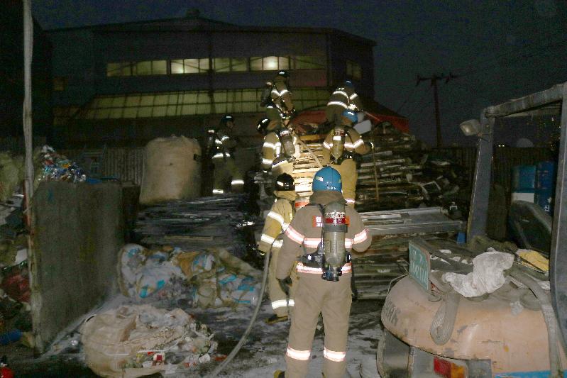 인천공단소방서(서장 안영석)는 지난 27일 저녁 6시 36분경 고잔동 소재의 한 고물상에서 화재가 발생하여 소방차량 18대, 소방대원 48명이 출동해 진압했다고 밝혔다.