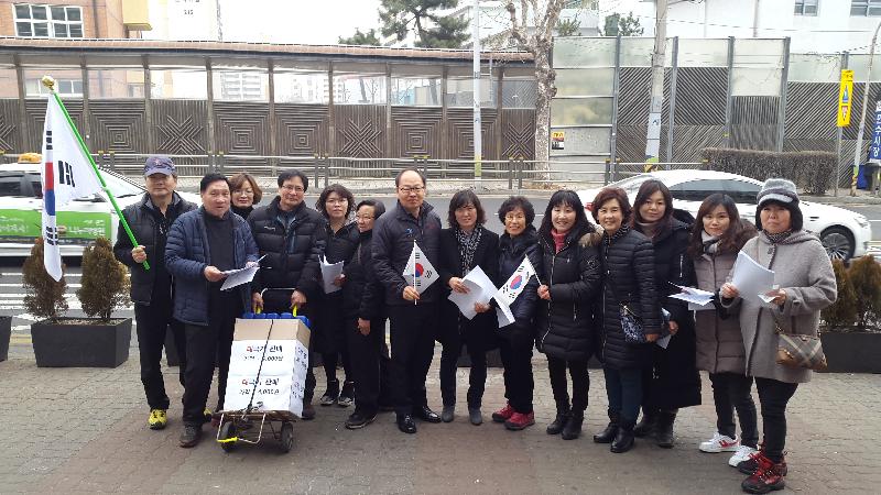 이들은 만수시장 방문 주민들을 대상으로 태극기 달기 운동 및 청렴 홍보물과 손 태극기를 배부하고 현장에서 가정용 태극기를 판매했으며, 태극기 달기에 동참해 줄 것을 호소했다.