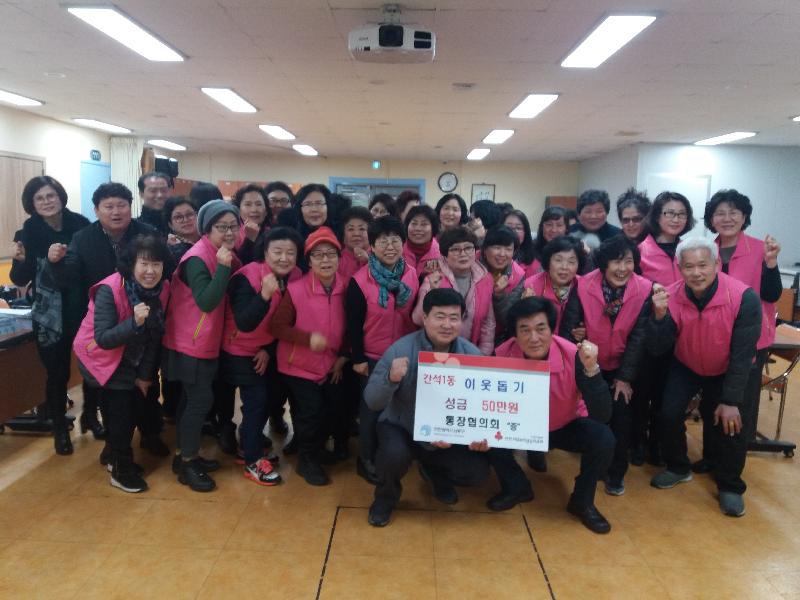 | 간석1동 통장협의회 성금 기탁 사진. |