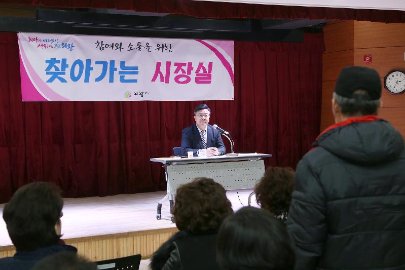 의왕시는 지난 27일 고천동 주민센터에서 찾아가는 시장실을 개최하고 시민들의 애로 및 건의사항을 청취하는 시간을 가졌다.