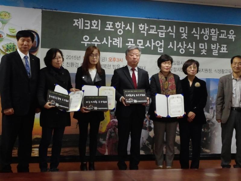 한편, 포항시는 읍면지역의 초중등학교 대상 무상급식 및 친환경 우수식재료 공급과 한우암소 학교급식사업, 학교우유 급식사업 등 다양한 사업을 통해 우리의 미래인 학생들의 심신을 위하여 노력을 다하고 있다. 이종부 포항시농업기술센터 소장은 수상자들을 격려하며 “어린이들의 건강한 심신을 위해 학교급식을 통한 식생활 개선이 무엇보다도 중요하다”고 강조하고, “어린이 건강도모는 물론 학부모들이 안심할 수 있는 우수 친환경 농축산물 공급을 위해 최선을 다 하겠다”고 말했다.