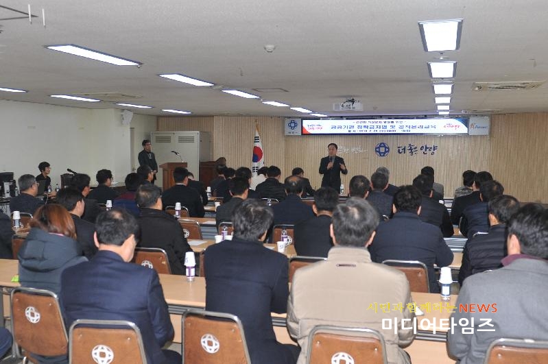 안양시(시장 이필운)는 사회 각 분야에서 미투 운동이 확산됨에 따라 지난달 28일 시청 4층 회의실에서 시 산하 9개 기관의 경영진 48명을 대상으로 공직윤리 및 젠더폭력 예방교육을 실시했다.