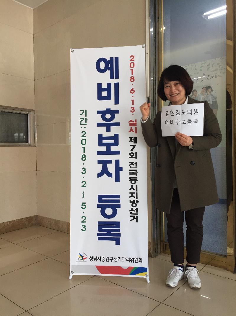 김현경 전 성남시의원은 경기도의회 의원 성남시 제4선거구 (중앙동/금광1,2동/은행1,2동)에 출마하기 위해 2일 오전11시 성남시중원구선관위에 예비후보 등록을 마쳤다.
