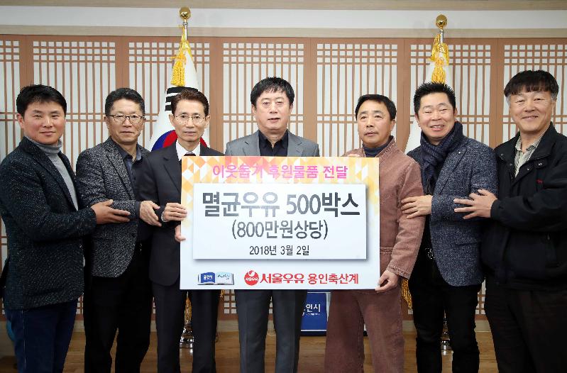 용인시(시장 정찬민)는 2일 관내 낙농가 모임인 ‘서울우유 용인축산계’에서 복지시설에 전해 달라며 멸균 서울우유 500상자(800만원 상당)를 기탁했다고 밝혔다.
